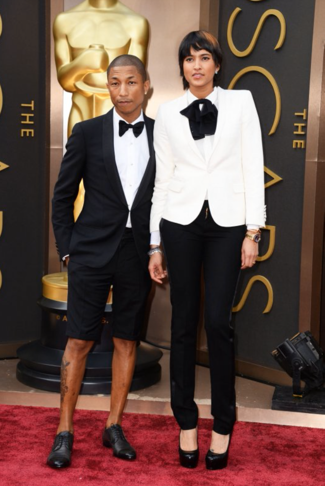 If there was ever a time to wear tux Pharrell, this was it. The Oscars are not the appropriate event to get creative with your LANVIN tux and go for capris instead. I thought he looked really poorly styled, and his date was just as bad. For someone with such a interesting style, this was very disappointing. He tried to push the envelope too much, and it just wasn't happening. The black tux is a classic look for a reason Pharrell.
